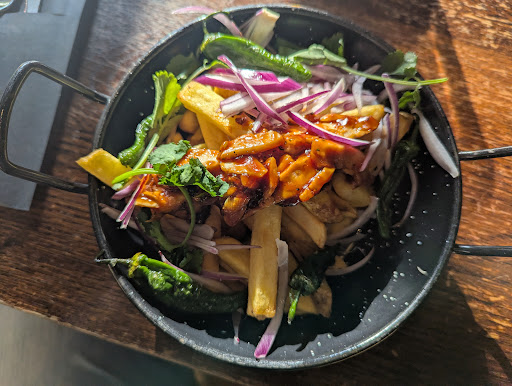 Read moreI have seen this restaurant at Markthal a few times and it looks like it has a great vibe, so we wanted to try it. Today we did. What a disappointment!!! 😞 Ordered the loaded fries, which were basically dry fries in a bowl with no sauce whatsoever. Some onions, peppers and salantro on top. But the biggest surprise was the chicken on top. There were 60 grams of chicken in my bowl, like 10 tiny sliced pieces. What a rip off. I love loaded fries and have had them at many restaurants, but these were bad. These weren't loaded fries. These were just bland fries with no sauce and some colorful onions and greens. The service was so so, the place was nearly empty and yet we had to wait for a long time (and wave to get their attention) to...
