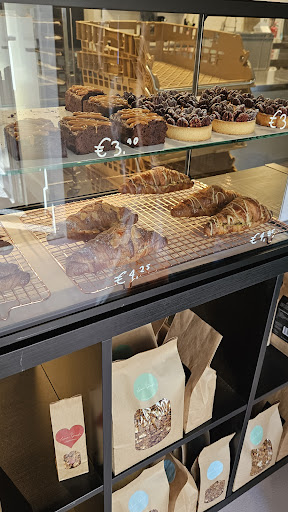 Bij binnenkomst was Leanne nog in gesprek met een klant, waarna ze me vervolgens hielp met mijn keuzestress. Ik rekende een pecan croissant af, waarbij ik even moest slikken over de prijs. Had ik echt een croissantje van bijna 5 euro gekocht?