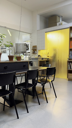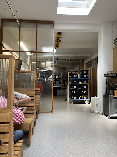 The place is quite big. The interior is large because, among other things, the roastery is also inside, but besides that there is also plenty of room to sit. The interior is decorated with light colors and tiles on the wall. The plants inside and the wooden interior give it a cozy atmosphere. There is also a large terrace for the coffee shop attached.