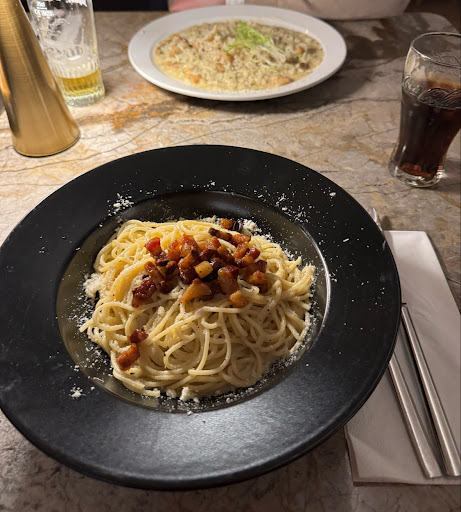 The Carbonara was unacceptable. There was barely any trace of egg yolk and was doused with cream, which obviously hid the flavour of the cheese. Furthermore, more pepper should have been used as this is a CORE aspect of carbonara. The choice of pasta for the above mentioned dishes was atypical. Thinner than what one would expect from an Italian restaurant.