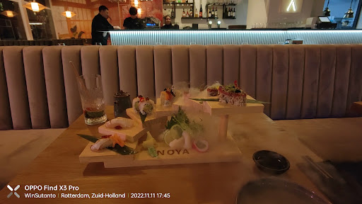A brand-new modern Japanese restaurant right in the heart of Rotterdam, around the corner/at Schouwburgplein. Beautiful interior and super delicious food and mocktails. The food as well as the drink menus are truly exciting. At first glance perhaps it's on the pricy side but it's right in the middle of the city (close to the shopping and theatre districts) and it's worth every penny, judging from the quality of the food AND the excellent, super friendly service. Tonight I had beef oshi, spicy karaage, hotate (torched scallops), Rainbow (deep-fried shrimp, salmon, tuna, sea bass), hamachi nigiri. Look at the presentation and great attention to details! The taste is better than what I can show in these photos! I can't wait to come back to try other delicacies (e.g. warm dishes) and cocktails on offer. Highly...