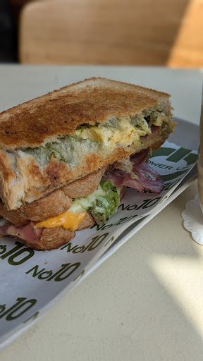 No 10 is a great cafe, if you search on Google for the best coffee in Rotterdam, you will definitely come across it. They truly have a great quality of coffee, I am no professional but I have much experience. The atmosphere and the vibe is a prime example of gezellig (dutch word for coziness). They have a lovely crew, glad to help you with a smile. They have a small kitchen and bar, but it's not about size and we know it. I tried the sandwich there which was out of this world, the bread was toasted golden crispy just the way you see in movies, the turkey bacon was cooked well and you could tell that it was fresh. Speaking of fresh, they have a reputation for their fresh pastry, daily selection of pastry that you could never go wrong with, whatever you choose you are going to find love at first bite. In terms of coffee, I love intense high quality coffee there, I had double shots of espresso there and I was in for a treat. You have to try it for yourself because coffee preferences are personal but I really enjoyed it.
