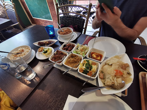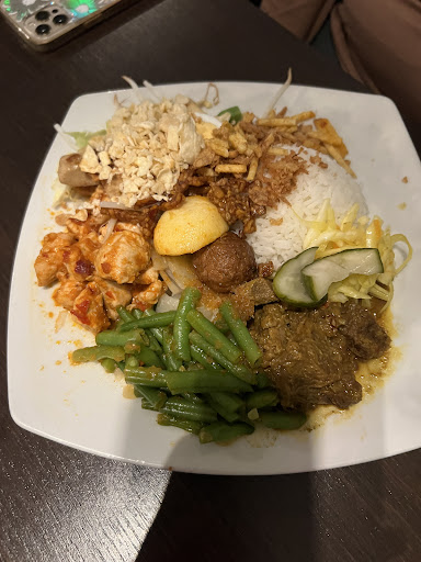 We accidentally went through the take away door but asked to get seated and the pointed us to the other room. Came here on a Thursday night, fairly busy btu not too bad. We ordered a few things for dinner: Rames Special (Ajam Pedis, Daging Rendang, SG Boontjes, Gado Gado, SG Telor, Rempah-bal bali and a skewer of satay Ajam with prawn crackers, Atjar ketimun and seroendeng with White Rice), Spicy Seafood Schotel (Udang and Ikan with Tjap Tjoy), Ajam Pedis with Bami Goreng and lastly Daging Rendang with Bami Goreng. The food was really really good and especially for the price, really nice value. Everything was good that we ordered. Would recommend...