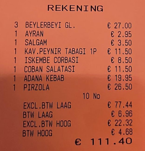 Read moreThe value for money is bad compared to other Turkish restaurants. We ordered mix grill for two people for 48 €. The mix was also not very good and it is the first time we get one skewer (per person) with two meat pieces and two chicken pieces on it. In all other restaurants, we got a skewer of meat and another one of chicken. The taste was not bad except for the kofte (/burger). The salad and bread were fresh and good.