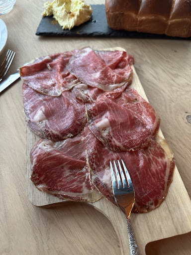 Read moreWe had dinner on a very rainy day. What a nice restaurant can’t wait to eat there in summer at the terrace. Three weeks opened. Great service. You can see they enjoy there work and want to give you a great might. Small but nice menu. We did sharing and had a combination of Vegetarian and meat. Really nice food. We ordered the Wagyu ham, burata, tuna, potato bread, capaccio, pulpo, mussels, celeriac and ribeye. and loved it. Combined with champagne and the poully fume. We...