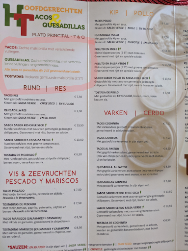 The menu clearly stated that all tacos, quesadillas and tostadas are served "2 st" with salad. We both got one tostada per person, no salad. We mentioned that to the owner guy, he tried to make up a story like "oh, the menu is new, let me see, well tostada is a fried tortilla thing - yes, we know what tostada is - so you only get one piece." Didn't make any sense. He just tried to lie to us for his mistake and basically charged us 6.50 and 7.50e for each tostada. He cannot make an excuse that it was a miscommunication or language issue since we communicate them in Dutch, English and Spanish.