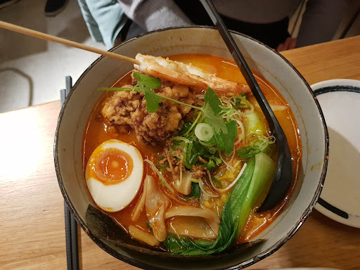Read moreOur first visit but we left with big smiles. The restaurant is centrally located and easily found. Nicely laid out interior with a bar down one side and the kitchen at the end, the cooking visible from the adjacent tables. Very friendly and attentive service. The menu offers lots of choice of both ramen and side dishes. We ordered the takoyaki and two bowls of ramen, the spicy ebi furai kara age ramen and the mala noukou chicken ramen plus a couple of calpis. The food arrived quickly and was well presented. The taste lived up to the look of the dishes with everything being delicious. The ramen was the best I've ever tasted. Such a wonderful broth. The takoyaki was very tasty but could have had a little more octopus. A minor quibble though. My well travelled friend stated this was the best ramen she'd had outside of Japan. The bill was very reasonable and we left very satisfied with our first but not...