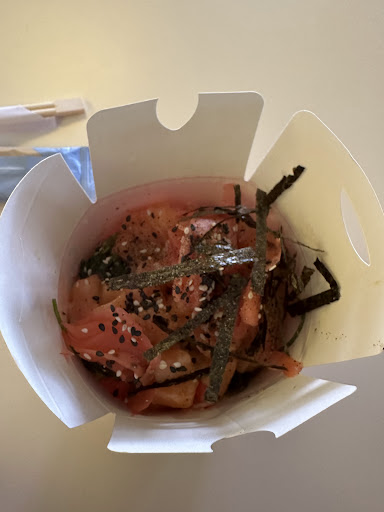 Read moreI ate here twice. The first time, not so good with stir fried noodles. The second time, highly recommend this combo: sushi rice, salmon, crab sticks, seaweed salad, mango mayo, nori seaweed, pickled ginger, and sesame seeds. The combo is fresh. Don’t forget to add more pepper by yourself to help balance yin and yang! (I found that rice is better than noodles here) You can have some extra cookies and candies on the dish next to pepper and salt on the left side of the order counter. The service guys are friendly. Waiting time depends on...