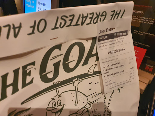 Ā Ā Ā Read moreThe Goat is right next to the metro and tram station of Beurs, walking distance. Walked in, got menus and were seated. We had a group of 5, we ordered different sandwiches. We ordered the Frankenstein (Fried chicken, smash beef burger, cheddar, lettuce, pickles, burger sauce, brioche bun), 2 Kimchi-Clucks (Fried chicken, homemade kimchi, Sriracha mayo, Korean BBQ sauce, sesame, brioche bun) and 2 Double Troubles (2x80 gr. beef patty, cheddar, grilled onions, pickles, burger sauce, brioche bun). Some of the sandwiches, we made it a combo which had fries and coleslaw. Some of them we just got fries. Overall we tried them all and the best was Double Trouble, this was super super super good. The fries were solid but wish we had more sauce for the fries. Great place, excited to try more sandwiches. The service was amazing too, very nice servers and got us...