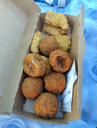Read moreGisteren weer eens lekker naar het strand geweest om vervolgens patat etc te halen om lekker op het strand op te eten. Ja, het was druk. Maar er stond voldoende personeel. Alleen jammer dat ze geen van allen door hadden wat ze aan het doen waren. Ze stonden meer niet achter de balie dan wel. Wat een ongecontroleerde boel! Bijna een uur zitten wachten op 3 patatjes en wat snacks. Die trouwens al meer dan 15 min gebakken in het mandje boven het frituur hingen. Patat lag er ook al ruim 20 min en werd telkens nieuwe bij geschept. Dus als je pech had, kreeg je de oude patat. Naast de frituur stond een bak met verkeerd gebakken snacks. Er loopt een ( denk Marokkaanse dame ) achter de balie, op zoek naar een snack. Ze kan haar bestelling niet vinden en besluit om de snack uit de bak te halen die naast het frituur staat met oude koude snacks en geeft deze gewoon mee aan een klant. En dan de toiletten: ik heb nog nooit zoiets smerigs gezien. En geef je het aan, doen ze er helemaal niks aan. Vervolgens krijg ik kapotte bitterballen, koude snacks en koude patat. Niet echt je geld waardig dus. En dan de dames die met sieraden en nepnagels je salade staan klaar te maken. Tijd dat ze eens...