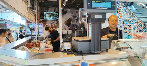 the fish soup was served cold, and when i asked if it could be warmed the lady said it couldnt be, and cold soup with a fishy taste isnt great. the pepper was overwhelming in the soup as well, i wouldnt come back for the soup. there was a nice view of the ceiling in the market hall from the second floor, but the same could be viewed at other shops.