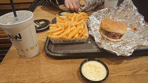 Even though I had to wait 45 minutes for a small burger 😂, the employees get a 5 star rating for how they dealt with the situation. The order receipt was lost and yes that can sometimes happen on a busy evening. For my wait I got an apology, extra burger, chicken wings, drink and they even wanted to add fries too. Honestly, I have never seen such a service and for that know that it's very much appreciated. I see alot of people become angry and disrespectful in my situation, but please show some humanity as people are doing their best to provide a service for you. Mistakes do happen and was impressed with the way it was handled. The burger and the rest were very tasty. Thank you and I would recommend it...
