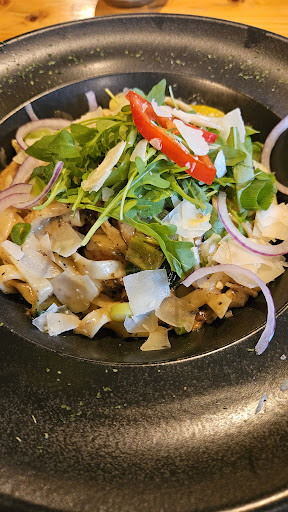 Read moreWij hebben zaterdag na een fikse wandeling hier wederom wat gedronken en gegeten. En dit was ook de laatste keer. We komen binnen met ( rustige ) hond en we mogen enkel op de hoge tafels plaats nemen, terwijl er andere gasten wel in het restaurant gedeelte zitten met honden. Onze hond gaat in het vierkant liggen van hoge tafel en die hoor je niet. , we krijgen zelfs nog complimenten over onze hond. Het eten, de pasta met truffel was op zich lekker... maar de truffel was er overheen gevlogen.... en de grove groenten, paprika lente ui rode ui en courgette, waren TÉ overheersend van smaak voor een truffelpasta, beter uitgebakken champignons en spekjes erbij gedaan. Bij afruimen geven we dit als tip mee en er wordt door de serveerster gewoonweg niet opgereageerd. Zeer spijtig, we hebben al betere pasta truffel gegeten. Waarbij je niet steeds de smaak van paprika en ui boven krijgt.... maar de wederom niet echt vriendelijke ontvangst en het eten zorgen ervoor dat we hier niet meer...