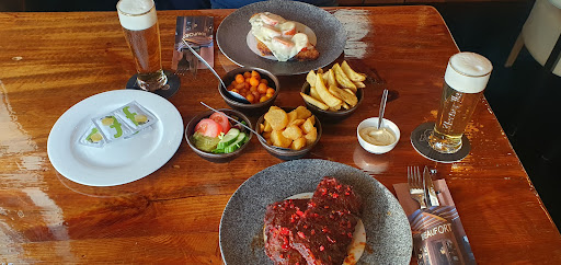 Auf die Frage, ob man zwei Weizenbiere bekommen könnte, hieß es, sie seien aus. Als wir dann jedoch beobachteten, dass der Nebentisch zwei Weizenbiere serviert bekam, haben wir darauf hingewiesen. Die Bedienung entschuldigte sich und wir bekamen dann doch noch die zwei Biere, leider nur zwei kleine Pilsgläser dazu, anstatt Weizengläser. Nunja, ok, kann mal vorkommen. Dann sind wir reingegangen, um uns dort an einen Tisch zu setzten. Leider wurden wir dort erstmal stehen gelassen. Es war viel los, trotzdem hätte man uns darauf aufmerksam machen können. Somit mussten wir erneut nachfragen. Als wir dann schlussendlich saßen, bestellten wir Schnitzel. Die Schnitzel, die über 20€ kosteten, waren derart lieblos zubereitet, dass man eigentlich ein Kantinenessen vor sich sah. Sie waren weder knusprig, noch zart. Auf die Trockenheit des Fleisches wurde hingewiesen. Die Beilagen wurden extra serviert, die waren in Ordnung.