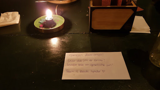 Wat hebben wij genoten van 'de nacht van de nacht" bij "It reade hynder" in Wommels! We startten met een heerlijk 3-gangen diner waarbij ook onze vegetariër goed aan z'n trekken kwam. Na het eten deden we de kuierlatten aan om de fryske greiden te ontdekken. Deskundige gidsen verstrekten allerhande informatie, wetenswaardigheden en anekdotes over de (tijdelijke) bewoners van Wommels en omgeving. Onderweg werden we verwarmt door een glühweintje of een biertje. Na een prachtige vaartocht in een fluisterboot kon er nog een afzakkertje genuttigd worden in een van de gezellige en smûke ruimtes of aan de bar in "It reade hynder". Dit noemt men Genieten met...