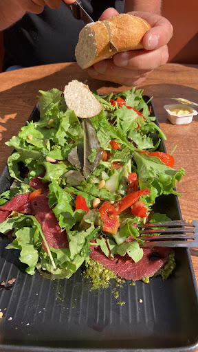 Nice to sit out there on the terrace, good coffee. De Echte Douwe Egberts. Bitterballen were good and a nice mustard. However the Caesar salad was terrible, the chicken was processed sliced chicken instead of nice fresh pieces. No anchovies and no parmesan cheese, no croutons and dressing was flat and lacking flavour. Needs a lot of improvement, could not sell this at cafe at home! Other...