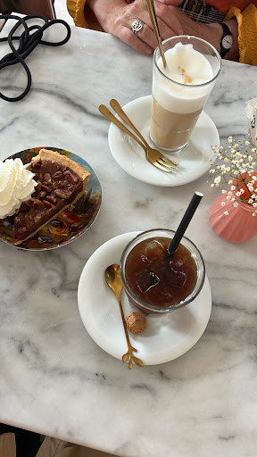 We ordered a latte and an iced black coffee. They had various syrups including sugar free vanilla. We also had the pecan caramel pie to share. Very unique taste, not too sweet and could tell it was of good quality.