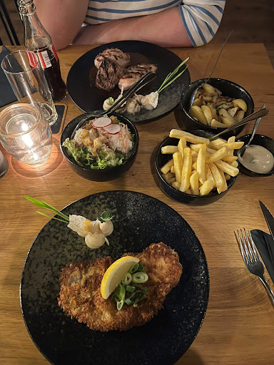 Mijn vriend had de schnitzel. Ook heerlijk. Krokante laag met verschillende kruiden en paneermeel en van binnen zacht perfect gebakken vlees.