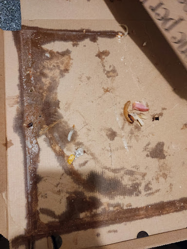 Ook de bezorgster presteerd t nog om een bestelde pizza van de onderburen aan ons mee te geven. Deze meneer had al betaald en alles. Wij hebben hem zijn pizza maar bezorgd, anders zat hij nu nog te wachten.
