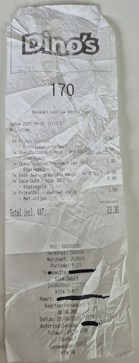 Read more10 euro betaald voor een patatje mayo en een broodje frikandel.. Normaal gesproken neem ik niet de moeite voor slechte reviews schrijven maar ik hoop dat het bedrijf hiervan leert!! Alles was koud bezorgd, ik kreeg ook bij de bezorging de deur even niet open en er werd 4x ongeduldig aangebeld door een 16 jarig jongetje en hard op de deur gebonst. (Terwijl het 30 minuten te vroeg was bezorgd dus ik was nog op zolder, maar sprintte binnen een minuut naar beneden) Het broodje waar de frikandel op lag was helemaal nat? En de patat bestond uit vet en zout en werd al gauw heel misselijk dus ik heb bijna al me eten weggegooit en voel me niet lekker. Super zonde!! Veel anderen hadden mij gewaarschuwd en ik had moeten luisteren, nu waarschuw ik jullie. Deze kwaliteit kan niet en al helemaal niet voor deze prijs!!