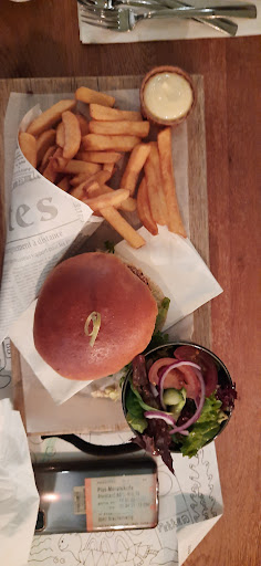 Read moreHeerlijke steak tartaar en een veel te grote bult nachos als voorgerecht. Als hoofdgerecht een biefstuk met sambal jus van Peter maar dat was eigenlijk een biefstuk die dreef in een bord met boter met een beetje sambal erin. Dit geserveerd zonder groente en met een snee brood. Niet helemaal het geld waard. Het andere hoofdgerecht was een broodje hamburger 'plein' maar hoewel het er aardig uit zag, kwamen de burgers volgens mij tot de vriezer van de Spar ertegenover. Ook niet heel best maar ook niet heel smerig. Patat was wel heel lekker. Als toetje hadden we een trio van ijs en een 'pindarots'. Deze waren beide zeker het hoogtepunt! Snickers op een bordje en de kokos ijs was ook echt heerlijk.