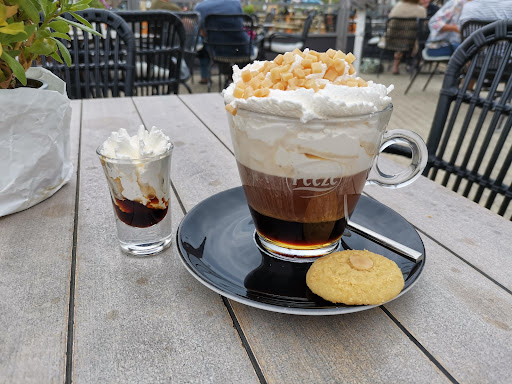 Read moreWir haben hier zwei Cappuccino bestellt und dazu wurde uns ein kleines Glas mit Sahne und â wie wir dachten â Karamell o.Ă€. serviert. Auf Nachfrage stellte sich jedoch heraus, dass es sich um Sahne mit alkoholischem Kaffeelikör handelte.