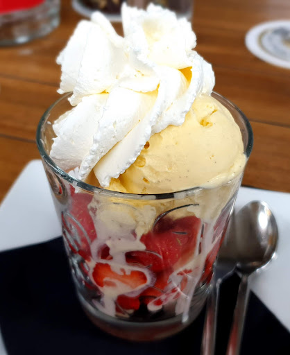 Read moreWir haben hier zwei Cappuccino bestellt und dazu wurde uns ein kleines Glas mit Sahne und â wie wir dachten â Karamell o.Ă€. serviert. Auf Nachfrage stellte sich jedoch heraus, dass es sich um Sahne mit alkoholischem Kaffeelikör handelte.