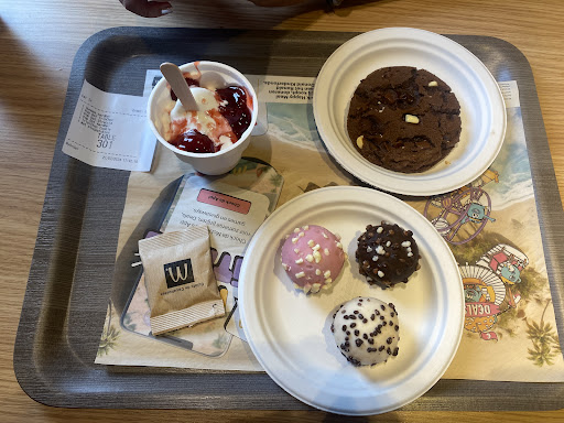 Een tijdje later plaats ik een bestelling voor McFlurries (soft-ijs) en heb het nummer van mijn bordje ingevoerd. Na een tijdje kijk ik richting de balie (omdat ik het zo lang vond duren), en ik zie tot mijn grote verbazing dat mijn bestelling gewoon op de balie was neergezet!! Het personeel had GEEN ZIN om het naar de tafel te brengen. Wil kennelijk gewoon niet begrijpen hoe dit landelijk concept van McDonalds werkt!