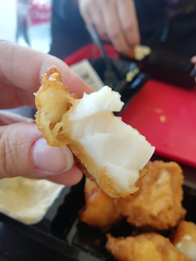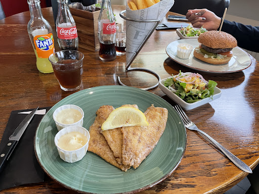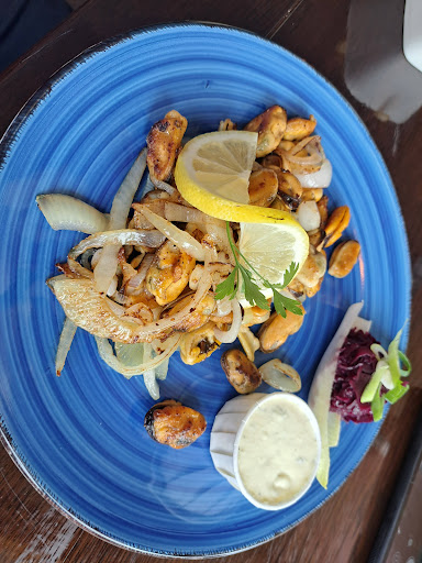 Read moreJeder mag selbst urteilen, ich fand es gut, ich fand es teuer und ich fand einige Dinge nicht so toll... Der Reihe nach: es liegt central, es gibt Aussen und Innenplätze und einenKinderspielplatz direkt nebenan, bewacht, kostet Eintritt , aber er hat auch Trampolinsund allerlei Spielgeräte, die den Eintritt rechtfertigen. Parkplätze sind genug vorhanden, jedoch sind nur 1,5 Std parken ohne Gebühr. Die wird gesichert durch eine Schranke. Das Restaurant liegt direkt am Kreisverkehr Sint Maartenszee, also direkt an den Dünen zum Strandübergang. Ich denke, im Sommer herrscht dort reger Betrieb inmitten der Abgase..... Die Inneneinrichtung gleicht einer Riesenpommesbude....wer's mag.... Die Aussenbestuhlung besteht aus Bänken mit Holztischen oder Polsterbänke mit absolut durchgesessenen Polstern, worin man einsinkt und der dazugehörige Tisch viel zu hoch wird, nichts für Kinder oder ältere Menschen..... Essen und Trinken...... Ich bestellte eine Portion Kibbeling und einen Kaffee......da kann nichts schiefgehen, denkt man sich, aber....... Ich bekam, nachdem meine Signalscheibe klingelte und ich mein Essen abholen konnte, einen halbvollen kleinen Becher mit schlechtem Kaffee und 4 mittlere und 2 sehr kleine Stückchen panierten Fisch in einem Plastikschälchen und bezahlte dafür 12,65 €, So, nun mag jeder selbst urteilen, mich sieht der " Godfish " nicht mehr, davon...