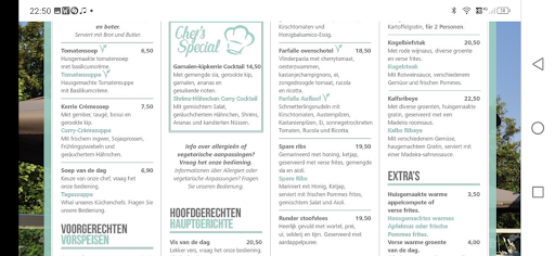 Read moreLoved it! Just a short walk from the beach. Friendly little place with great service and really good food. I are the fish and chips and everyone else in my party of fine after something different. Everyone said the food was excellent. Good selection of beers and other drinks. I recommend visiting, I will come back if I get the chance. Pro tip: the menu is in Dutch and German, so take advantage of technology if you can to translate. Otherwise, most of what you see can kind of be figured out with a little effort...