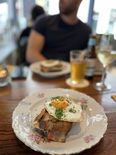 Both my brother and I had a very decent and tasty Croque Buikspek; a rustic grilled cheese sandwich with pork belly and a fried egg sunny side up on top, nicely finished with tarragon. Service wasn’t bad but not good either. Wrong drink served (corrected), ignoring finished plates for over 20 minutes and not attentive to empty glasses. However, the apparently very young and new host was kind and friendly. Our table in the periphery, next to the window (as requested) was situated in a unpleasant chilly draft, next to damp coats hanging a few inches too close behind me. The overall ambience was quite noisy. Could be because of the very present parents playing some kind of obnoxious board game with their toddler (why here?!), could be bad acoustics. The jazzy lounge music slightly made up for it though. Perhaps the atmosphere would be better on a sunny bright day.. but good food and friendly staff certainly makes it worth...