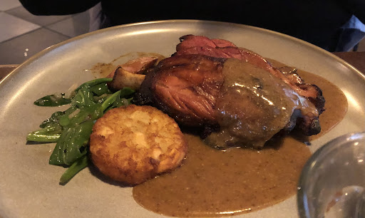 Als hoofdgerecht heb ik gekozen voor een varkenshaas. De varkenshaas werd geserveerd met een heerlijke champignonsaus met verse champignons en reepjes chorizo op een bedje van zeekraal. Deze combinatie had ik nog niet eerder gegeten, maar wat heb ik hier van genoten. De varkenshaas was perfect gebakken en van een goed formaat. Als bijgerecht werden heerlijke frietjes geserveerd met een schaaltje mayonaise en een salade met diverse verse ingrediënten.