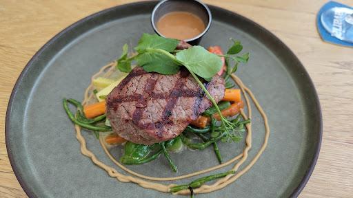 Wir waren aufgrund der guten Bewertungen und der ansprechenden Karte in dem Lokal und wurden - enttäuscht. Zum einen passt das Ambiente leider mit seinem klebrigen Tischen zum Campingflair. Zum anderen wurden erst das Fleisch, 10 Minuten die Beilagen serviert. Der Garpunkt des Fleisches wurde leider deutlich verfehlt. Nachdem wir das Fleisch bemängelt haben, hat der Kellner das Fleisch durch das halbe Lokal getragen, mit Kunden gesprochen, bevor das gleiche Fleisch 5 Minuten später nachgebraten auf meinem Tisch gelandet ist. Zudem wurden die, teils nicht frischen, Beilagen auf Gemeinschaftsschalen serviert die so groß, wie Einzelportionen waren. Die nachbestellten Pommes waren hingegen für eine Person doppelt so groß, wie die Schale für zwei Personen. Grundsätzlich vermutlich ein sehr fähiger Koch, denn das Essen hat geschmeckt, aber wir waren einfach sehr enttäuscht.