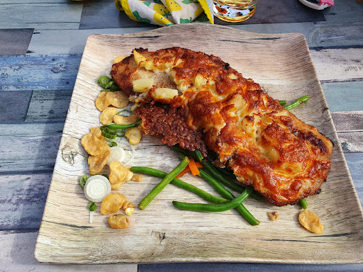 The food is offered at proud prices, however, the food does not live up to the price. Some of the schnitzel we ordered was burnt, and some of the breading was barely browned. There was a "side vegetable", which tasted very bland.