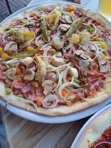 I still don't know how you can make everything so bad. Probably it's touristic place,so anyway someone will come with hope to eat good pizza here,but it's not place for that for sure. First we got like bake off,cheap bread from supermarket as a 'brood met kruidenboter', antipasti plate had olives, which taste like they're open too long. Pizza was disaster - horrible dough (dough what you can buy in supermarkets is way better), it was swimming in horrible, sour tomato sauce. Everything taste super cheap. I don't know how they can call themself pizzeria if they have no idea how to make pizza. It was wasting of money. I'll never go back there and don't...
