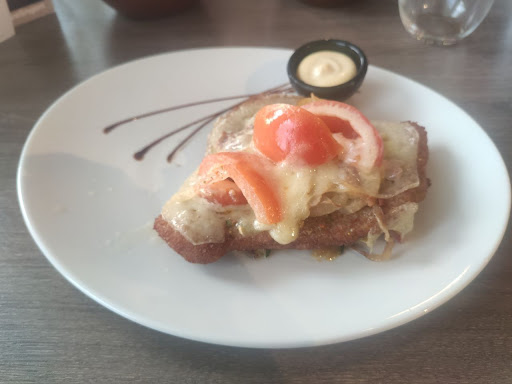 Het voorgerecht was ook zondemeer smakelijk met goede verse ingrediënten. Na het voorgerecht nog even een drankje besteld en helaas wederom duurde het een tijd voordat we deze hadden. Toen ze uiteindelijk de lege borden kwamen ophalen kregen we de vraag of dat we het hoofdgerecht al wilde hebben. Nu, het antwoord "ja" was nog niet uitgesproken of het werd al geserveerd. Niet dat dat erg was want we hadden al de nodige tijd zitten "natafelen". Ook dit hoofdgerecht was wat je er van zou mogen verwachten ware het niet dat ze op de schnitzel kaas en nog meer garnituur hadden gedaan en deze even in de over hebben laten smelten. Daardoor was de schnitzel doordrenkt van de smaak van de kaas en proefde je de schnitzel eigenlijk niet meer. Leuk dat ze wat anders hebben geprobeerd met een schnitzel maar wat mij betreft niet geheel een succes. Niet dat het heel vies was maar als ik dit had kunnen inschatten van de kaart, had ik deze zeker niet genomen. Mijn vriendin had de vis genomen en die was gewoon lekker. Daar hadden ze een mooi knapperig korstje op gemaakt wat daar wel van meerwaarde was.