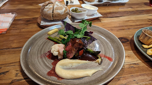 Read moreDok is een mooi restaurant ,maar slecht te vinden. Aan buitenzijde staat nergens de naam vermeld. Wij konden de naam tenminste nergens vinden. Bediening slecht en zeer traag. Lang wachten op drankje. Bestelde eten niet wat je verwacht. Biefstuk met gepofte knoflook besteld, maar gepofte knoflook nergens te vinden. Zat volgens bediening door de saus. Had dus anders vermeld moeten worden op menukaart. Bij het bestellen van een biefstuk verwacht je automatisch het juiste mes. Hier moest je zelf apart om vragen. De bestelling van stokbrood met smeersels: het stokbrood was vanbinnen nog bevroren. Na melden werd er vers brood afgebakken. Dit was zo heet dat je het niet vast kon pakken om te snijden. Had verwacht dat het brood gesneden geserveerd werd. Er wordt na het eerste drankje verder niet meer gevraagd of je nog wat wil drinken. Personeel staat met z'n allen aan de bar. Uiteindelijk loop ik zelf maar naar het personeel om te vragen of we nog een drankje kunnen krijgen bij het eten. Dit krijgen we na een tijdje. Het is dus niet zo dat er niet voldoende personeel staat. Als klap op de vuurpijl moet ik naar het personeel lopen om te vragen of we de dessertkaart kunnen bekijken. Men komt dus niet uit zichzelf langs. Na een keuze gemaakt te hebben en de bestelling doorgegeven te hebben ontvang ik na een tijdje nota bene het verkeerde dessert , bediening geeft ook een andere naam op.Ik geef dat aan bij de bediening. Zij gaat het navragen en komt terug met de mededeling dat dit wel het juiste dessert is maar dat ze alleen de verkeerde benaming gegeven heeft. Ik bekijk vervolgens nogmaals de menukaart en het klopt echter totaal niet met wat ik besteld heb. Nadat ik een ander personeelslid hier nogmaals op aanspreek verteld zij mij dat er een fout gemaakt is in de keuken en bied aan om alsnog het andere dessert klaar te laten maken. Wel met de vermelding dat ik nu juist veel meer heb. Uiteindelijk heb ik dit dessert van het huis gekregen. Maar u zult begrijpen: het geheel is beneden alle verwachting. Alertheid, betere aansturing personeel en een betere gastvriendelijkheid is hier...