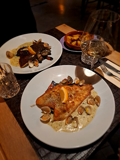 Aan onze tafel is de carpaccio, parelhoen, charcuterie en de coquilles gegeten. Alle gerechten waren subliem van smaak en de perfecte portie-grootte. Vervolgens kwam de kabeljauw, eendenborst, gamba's en de tournedos. Wederom Ʃcht heel heel goed bereidt. De gamba's tot perfectie gegaard in een zalige saus en de tournedos briljant medium rare. De pinot grigio en Douro pasten erg heel mooi bij.