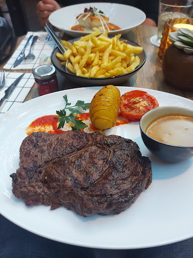 Read moreEen dikke voldoende ontvangen met een glimlach. Leuk tafeltje en meteen een drankje ingezet kijk zo hoort het. Een zoutje op tafel ipv het geijkte stokkie kruidenboter. Een no nonsense restaurant zo blijkt niet te moeilijk doen. Mijn tafelgenote nam de kabeljauwhaas en ik de entrcote met groene pepersaus. De meisjes van de bediening zijn doorpakkers. Lopen heen door de zaak kijken of de glazen leeg zijn en/of er wensen zijn nee dat ziet er prima uit. Ah daar is het eten de borden zijn goed warm en het bestelde ziet er vers en fris uit, warm uit de keuken dus niet lauw of flauw. De damp komt van het eten af lekker. Een chef die weet hoe het hoort en zn product warm afgeeft. De kabeljauw is volgens mijn tafelgenote prima. Mooi krokant van buiten en iets licht vochtig van binnen dus niet gortdroog of te zompig. Een mooi kabeljauw haasje is zo vermoord als de keuken ff niet oplet. De entrecote medium licht zoutje klein vet randje voor het smaakje prima heb ze wel eens anders gehad taai als rendieren leer. Lekker warme puree bij de kabeljauw en frietjes zo uit het vet lekker heet top. Pepersausje ook op temp frietje erin dopen. Kopje koffie na ook dat was prima. Met een gevulde buik terug naar de B&B...Enige opmerking/ stoorzender op deze avond. Was het zwaar irritant keffende keeshondje van een tafel verder op. Ik zou als uitbater geen honden toelaten in het restaurant. Buiten op het terras prima maar binnen nee! Om dat honden aangelijnd. Met elkaar de blaf wedstrijd met aangaan. Nee dat was geen succes Verder prima en lekker...
