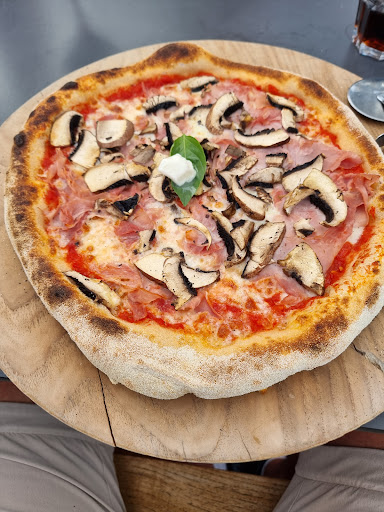 Min: -lawaaierige akoestiek -carpaccio niet afgekruid (vergeten?) -tiramisu (8€) was kleine portie en vlak van smaak -affogato (vanillle ijs met espresso en amaretto) was miniscuul bolletje vanille ijs met beetje espresso en amaretto. Aan 6,5€ voelde dit aan als een rip off. -maar grootste minpunt is de inefficiënte bediening. Voorgerechten werden al geserveerd alvorens aperitief er was. 1 gerecht werd verkeerd opgenomen, dus verkeerd gerecht werd gebracht. Jonge ober erkende de fout, maar ging er nogal lichtjes over...Het juiste gerecht maken zou “toch nog even duren...”, heb dus maar het bord aanvaard. Was uiteindelijk wel lekker. Bij afruimen tafel wordt gevraagd of overschot pizza in doos moet en of er dessert gewenst is. Heel goed, maar vervolgens wordt dit volledig vergeten, blijven de pizza’s op de tafel staan en wordt er geen dessertenkaart gebracht. Aan andere collega dan maar opnieuw gevraagd. Vervolgens wordt dan lege pizzadoos gebracht, je moet zelf je overschot erin kiepen en daar zit je dan de rest van de avond met een lompe pizzadoos op je tafel...En de dessertkaart wordt weeral vergeten... Een tafel heb ik horen vragen waar hun drankjes bleven, en een dame aan andere tafel kwam zelf de menukaarten vragen en moest de ober aanwijzen waar ze zaten. Ofwel is staff onderbemand, ofwel schort er iets aan de organisatie. Ze lopen er ook gespannen en gejaagd bij,wat niet bepaald bijdraagt tot een relaxte sfeer.