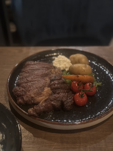 Restaurant is sfeervol ingericht het geeft de indruk dat de kwaliteit van het eten hoog in het vaandel staat. Mijn vrouw had de spareribs met chicken wings besteld. Op de menukaart staat "slow-cooked, finger licking gelakte dikke spareribs en hard-grilled kippenvleugels". Hoge verwachting, slow cooked geeft namelijk aan dat het vlees mals zou zijn en finger licking geeft aan dat de smaak super is. Echter was dit een enorme tegenvaller. Taaie spareribs met een neutrale smaak, hetzelfde geldt voor de chicken wings. Bij de medewerkers meedere keren aangegeven dat het gerecht niet naar wens is. Medewerkers geven aan, dat ze het doorgeven. Maar komen niet terug met een oplossing. Als je als restaurant hoge prijzen vraagt mag je als klant hoge kwaliteit verwachten. We hadden de meatlovers dry aged Tomahawk besteld. Deze was lekker maar er wordt een fors bedrag voor gerekend namelijk voor 700 gram betaal je 70 euro. De kosten worden niet vantevoren gedeeld, dus het is een verrassing wat je ervoor moet betalen. Bij de BBQ extravaganza krijg je vette worst, chicken wings, klein stukje varkenshaas en klein stukje biefstuk met een botje spareribs waar nauwelijks vlees aan zat voor 37,50. Kwaliteit was onder gemiddeld en dan nog durven om zo'n hoog bedrag te vragen. Als de kwaliteit van het eten hoog zou zijn, zou het acceptabel zijn. Maar dat is het nu niet dus 3 sterren voor het sfeervolle restaurant, mooie goed verzorgde toiletten, en een mooie kinderspeelgelegenheid. -2 sterren voor ondermaatse prijs/kwaliteit verhouding en personeel die geen acties ondernemen om een oplossing aan te bieden als het niet naar wens is.