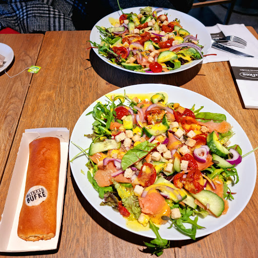 Read moreBufkes in het winkelcentrum van Ekkersrijt. Er zijn voldoende parkeerplaatsen aanwezig en gratis. Bufkes is bereikbaar met de roltrap of lift of de trap. Er zijn maar beperkt zitplaatsen binnen en je kunt bij mooi weer ook buiten zitten. Het pand wordt gedeeld met Piet friet. Er is voldoende keuze uit broodjes er is ook onder andere macroni salade en tosti te bestellen. Wij bestelden de grilworst en tosti. De broodjes waren lekker en de tosti vond ik wat mager belegd met de kaas en ham daardoor proef je...