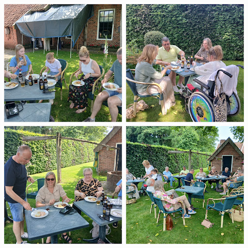 Een locatie waar de lunch begeleid kan worden met een trots verhaal van de eigenaren. Om deze plaats te begrijpen, is het goed om tijd te nemen voor dat verhaal. In dit gebouw zit vele jaren aan eigen tijd en eigen arbeid, vele jaren tegen de ambtenarenstroom in moeten werken om uit eigen beweging een historische saksenboerderij van de grond af te renoveren. Ik heb een prachtige lunch in de zon gehad. De pannekoek en de koffie smaakten...