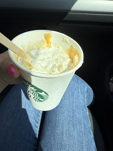 Read moreThis Starbucks is located in a service area in the middle of the road, so not the typical place where you'd come with your laptop to work while having a coffee. There are very few outdoor seating (although not a pleasant area to sit, traffic, noise...). Dogs are not allowed, and as I was traveling alone with one, I had to go to the petrol station instead, where I could enter with her...