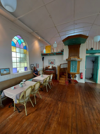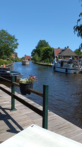 Het is vooral de perfecte locatie die het doet. Op een kruispunt van waterwegen en fietspaden, met uitzicht op de ophaalbrug en alle bootjes die voorbij komen. De kaart is beperkt, maar de koffie is prima! Leuk omgebouwd kerkje met zowaar een harmonium waar je op mag spelen! En je kunt er ook een fluisterboot huren. Tip: vaar gewoon op een neer naar Ossenzijl. Dan passer je al die leuke huisjes. Het is ongeveer 50 minuten enkele reis, en dan kun je daar ook nog op het...