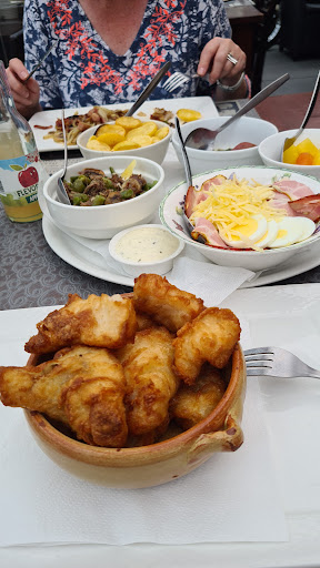 Read moreWe wilden een hapje eten voordat we naar een voorstelling moesten. We vroegen de bedrijfsleidster of eigenaresse (dat was niet duidelijk) wat voor witte wijnen ze had, ze lachte schamper en zei bits dat er maar 1 wijn was. Die namen we. Bij t serveren zat er lippenstift op t glas... ik zag dat ze druk was dus liep zelf even naar binnen. De mevrouw kwam me achterna gehold, rukte t glas vd bar, smeet de inhoud in de wasbak en blafte dat ze t wel zou komen brengen... ik zei ik kan t wel meenemen hoor ik ben hier nu toch... nee dat mocht niet! Ik had ook een grote fles water besteld en kreeg een kleine Spa blauw, op mijn vraag naar de grote fles was t antwoord we hebben geen grote. We bestelden in afwachting van 17.00(diner tijd) alvast een portie bitterballen(staat op de kaart) de kattige reactie was: we hebben een borrelplateau... makkelijk als we zijn zeiden we dat t prima was... ze had t duidelijk erg moeilijk. Waarschijnlijk waren de bitterballen op want op t kleine bordje lagen 1 frikandel (in 4 stukjes) en een hamburger ( in 4 stukjes) ... en 0 bitterballen!!! Toen hadden we t helemaal gehad😖 onze eetlust was totaal vergaan en mevrouw heeft ons met haar ontzettende onaardige gedrag weggejaagd! Wij komen hier...