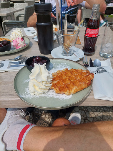 Er werden verscheidende wafels besteld, stukje appeltaart en een dame blanche.