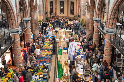 Amazing place in a converted Church. Under 10 mins walk from the Camperplaats! Please support this business if you're visiting the Motohome Stop. The bakery is brilliant, with a fantastic selection of bread and cakes. The butcher looked brilliant. I think there may even be a wine bar in here. However, our favourite was the little cafe down the right hand side. Very dog friendly owner. Well...