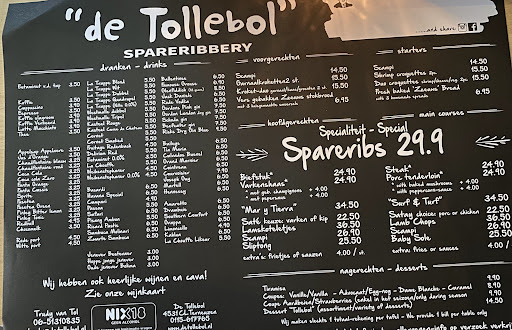 Read moreDe Tollebol wurde uns empfohlen, da wir unsere Gastgeber gefragt haben, wo wir Essen können. Die Empfehlung kann ich nur weitergeben. Das Essen war sehr lecker. Wir hatten die Sparribs und Surf&Turf und waren begeistert. Die Sparribs waren richtig lecker und zart, in einer tollen Marinade. Auch das Surf&Turf mit Garnelen und Lamm-Chops hat seit gut geschmeckt. Wir waren sehr zufrieden mit dem Essen und dem aufmerksamen Service. Gerne kommen wir wieder. Wir waren gegen 16 Uhr dort, deshalb bekamen wir noch einen Tisch ohne vorherzu reservieren, da noch nichts los war. Fürs Abendessen empfiehlt sich aber auf jeden Fall eine Tischreservierung, da das Restaurant nicht viele...