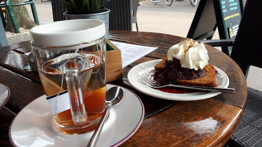 Read moreMooie plek op de hoek van de straat bij de kerk en tegenover de Coop. Leuke eigenaren. Twee keer geweest. Lekker buiten gezeten, ene dag gebruik gemaakt van het plaidje, andere dag was dat niet nodig. Eerste keer twijfelen wat we bij de thee zouden nemen.. goudstaafje met cranberry werd aangeraden want ' daar komen mensen voor terug' . Nou.. dat klopt!! Als je t op hebt, heb je wel een 'goudklompje' in je maag, maar lekker!! Wij kwamen dus inderdaad ook terug hier...
